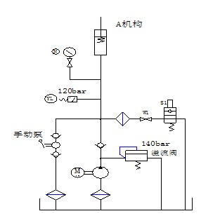 2)切斷電源后,再啟動電機(jī)M,A機(jī)構(gòu)執(zhí)行開閘動作,當(dāng)閘完全打開后,系統(tǒng)壓力升高,觀察壓力表N的指示值不高于所需壓力值的1.2倍。如壓力繼電器不能在所需的壓力值發(fā)出信號,應(yīng)調(diào)節(jié)壓力繼 電器YL的調(diào)節(jié)螺釘,使其正確的發(fā)出信號。